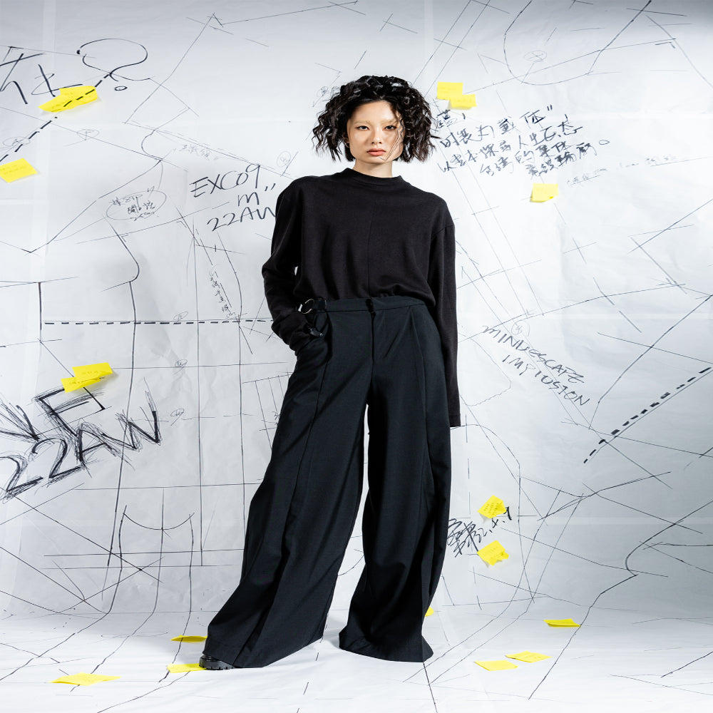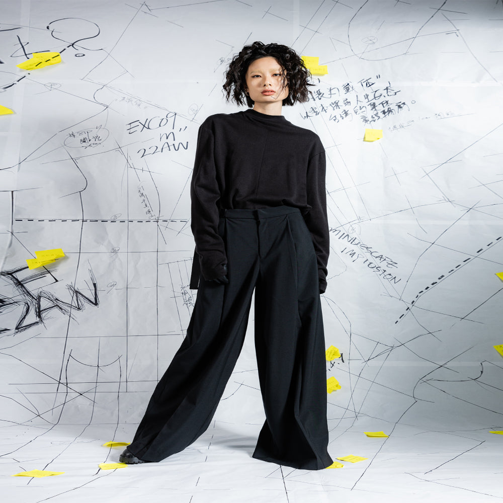 INF Deconstructed Wide-Leg Skirt Pants With Pleats In Back