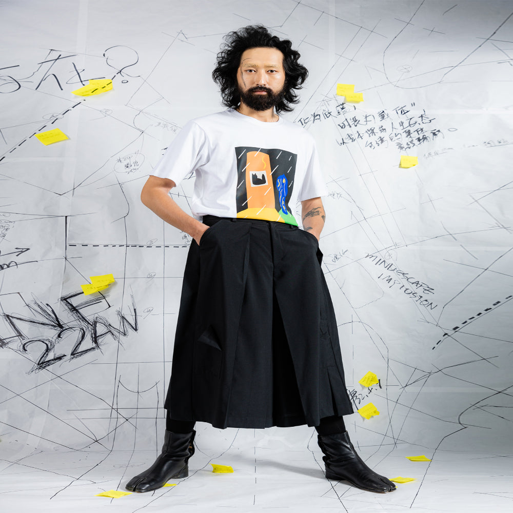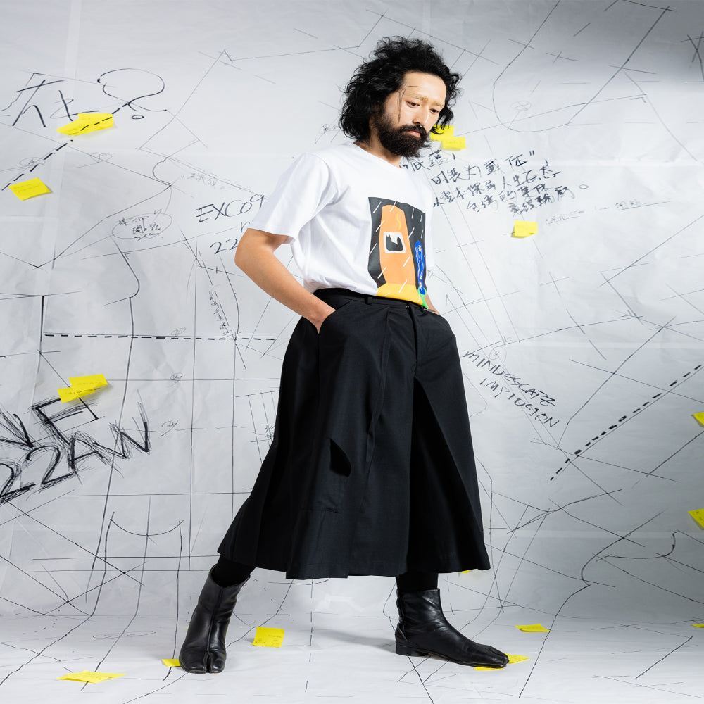 INF Multilayered deconstructed Japanese-style wide shorts