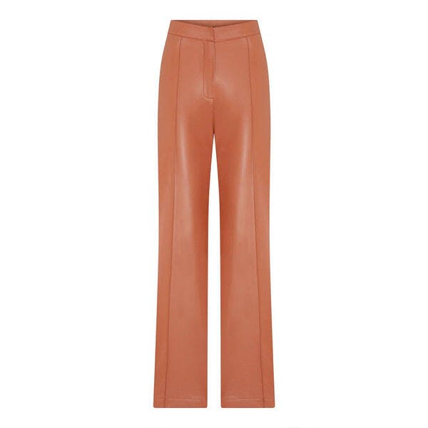 Nazlı Ceren’s burnt orange Alba Vegan Leather trousers are crafted from soft vegan leather, and featuring a high waist. No pockets.