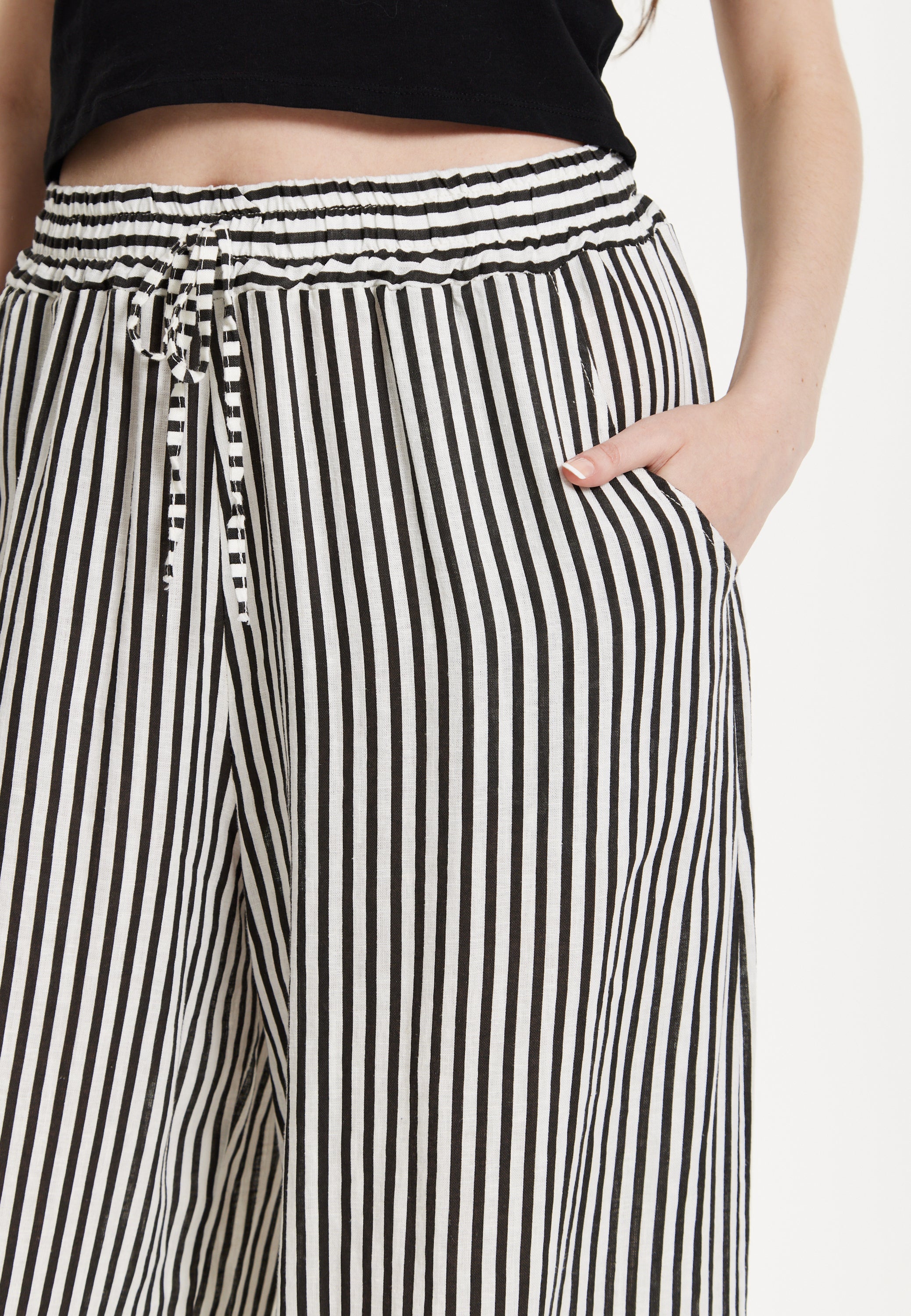 Keep it classic and cool with these Black and White Striped Wide Leg Trousers. Featuring a relaxed silhouette, drawstring waist, and breathable fabric, these trousers bring effortless style to warm-weather days. Easy to dress up or down, they’re perfect for beach strolls, weekend outings, or casual city looks.