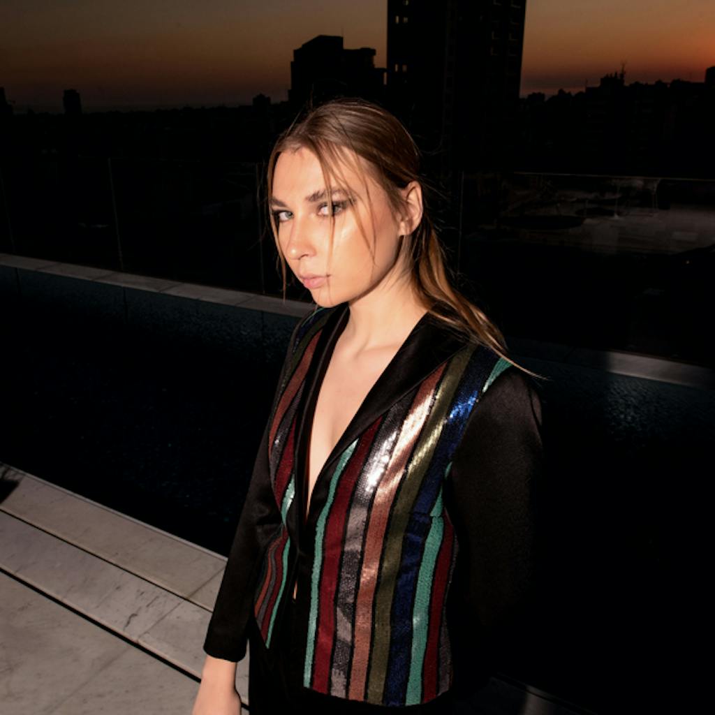 Black crepe Blazer in multi-colored sequins.