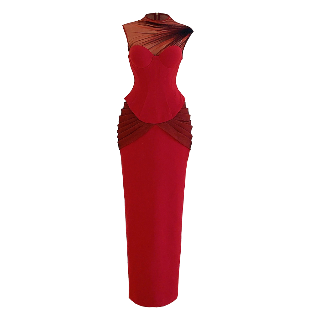 Meticulous in each stage of material processing to shaping the shape, the design of silk and velvet material is applied with the color-shifting mesh technique to create an impressive highlight. The 2-layer corset structure hugs the body's curves to help the beauty show off her entire figure