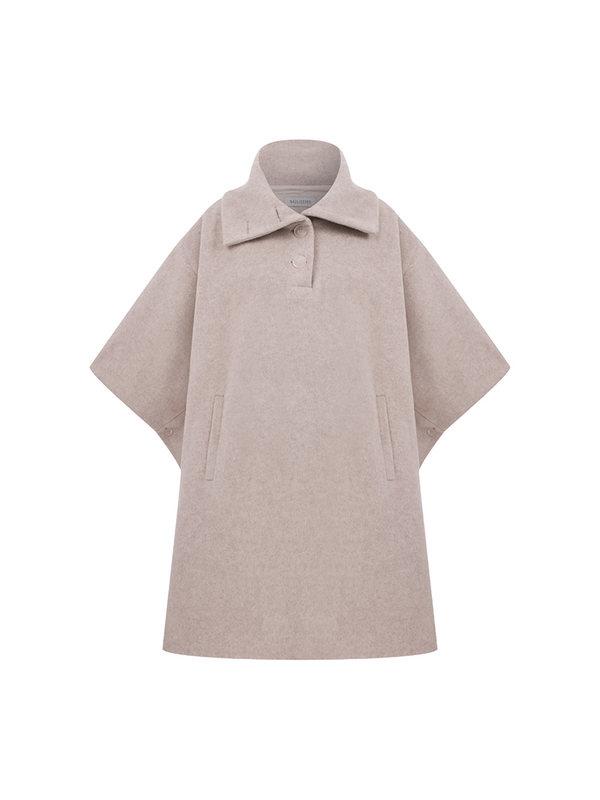 Nazlı Ceren crafts the Jarine Poncho in warm camel tones from a soft wool blend fabric, making it the perfect layering piece for any season. Designed with a buttoned collar for added style and comfort, this poncho effortlessly combines elegance and versatility, offering a chic solution for transitional weather.