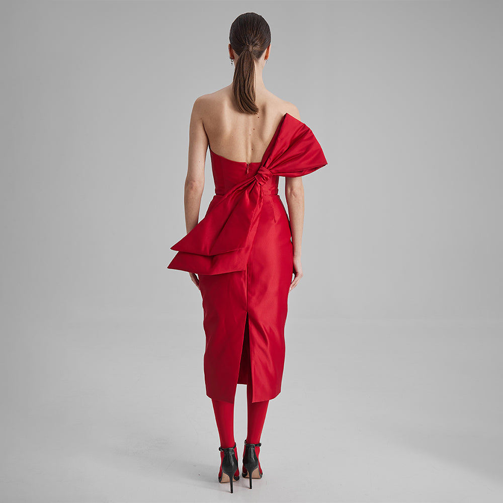 Experience the essence of minimalism and contemporary elegance with our Kira fitted dress in a stunning nude colour. The strapless neckline accentuates your natural grace, while the luxurious Mikado fabric lends a timeless allure.