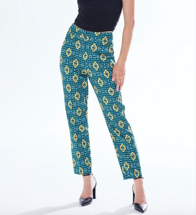 - Vibrant African Print: Featuring a unique geometric print in vibrant green, yellow, and navy, these trousers stand out with their eye-catching design that celebrates African artistry.