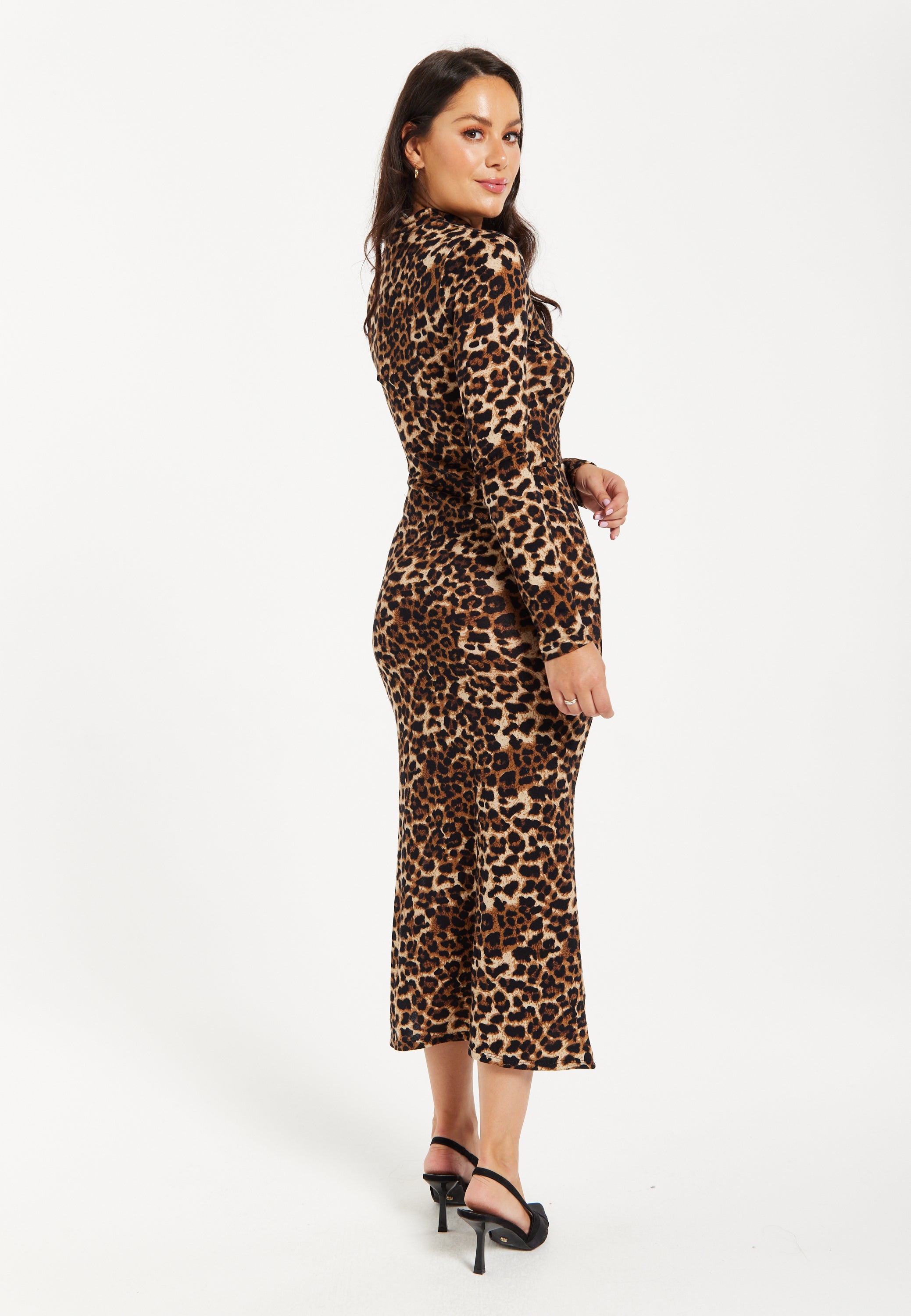 Elevate Your Style with the Liquorish Brushed Knit Leopard Print Midi Dress