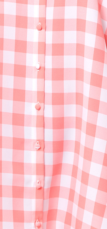 Women's Mini Dress, Pink Gingham with Puff Sleeves, Button-Up Front, Oversized Fit, Flirty Length
