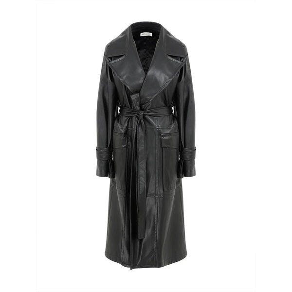 Nazlı Ceren's trenchcoat is crafted from vegan leather. It's designed with a relaxed shape that's enhanced by wide sleeves. Cecile trenchcoat embodies the label’s sophisticated vision.