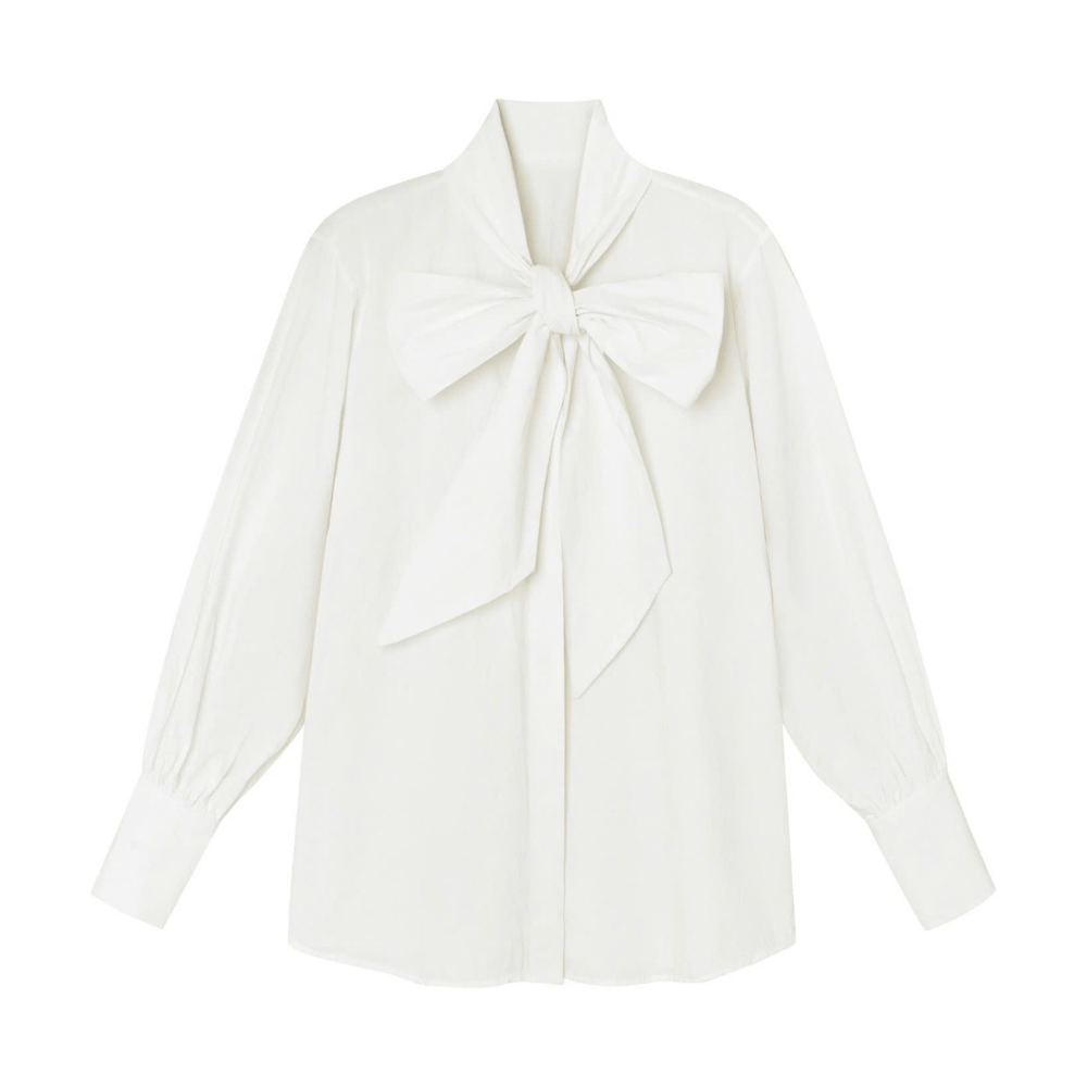Moonlight Straight Tie Neck Organic Cotton Shirt