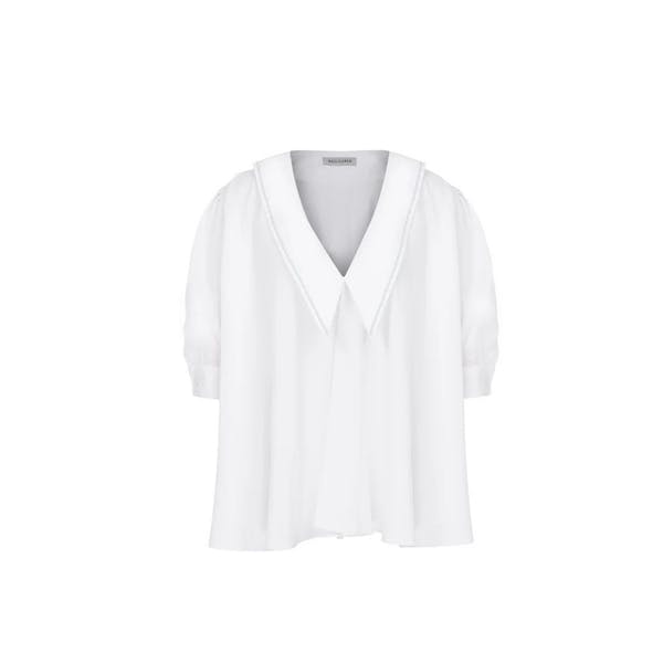 Nazlı Ceren's balloon-sleeved white Poppy shirt is made from pure cotton poplin to give the oversized volume-pleated silhouette a softened edge.