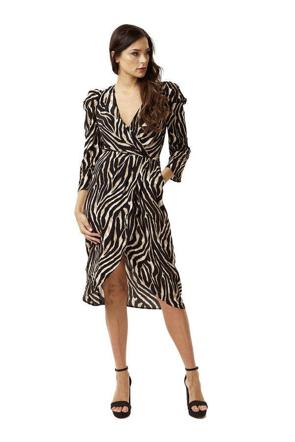 Elevate Your Wardrobe with the Liquorish Zebra Print Wrap Effect Midi Dress